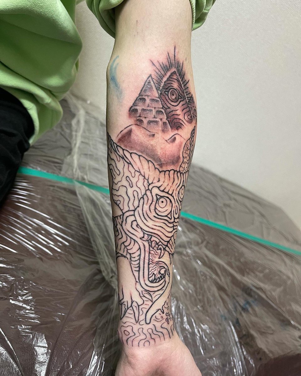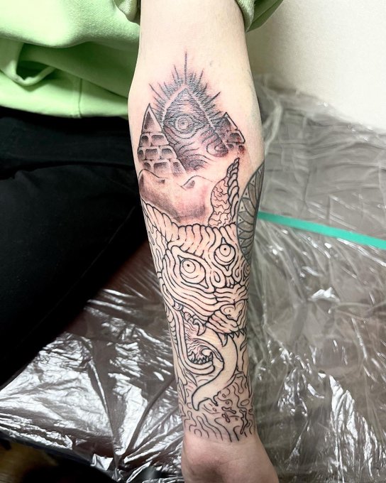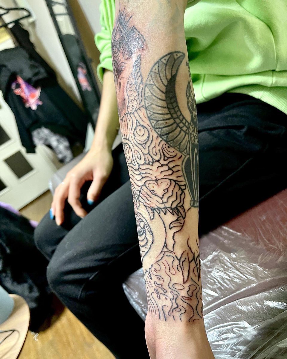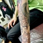 腕におまかせで一本彫らせて頂きました! 次で完成させる!☺️ 長い時間お疲れ様でした🔥 #tattoo #タトゥー #練習彫り #Art #artwork #art #myart #MyArt #Art #drawing #draw #blackandgray #tattoo #design #picture #tiktok #instagram #絵 #絵師さんと繋がりたい #photography #photoshop