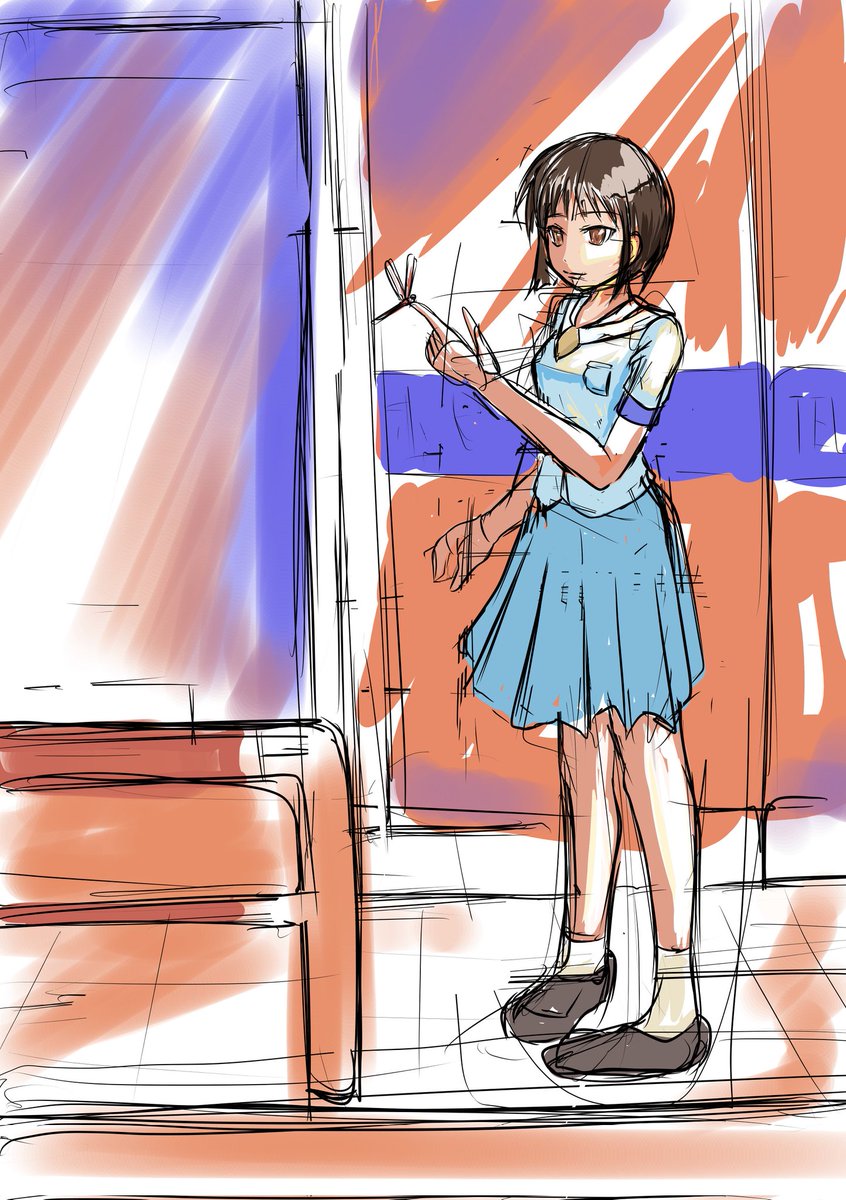 夏ですね。避暑地で涼みたいですね。 っつーかおかしいな、さっき投稿したと思ってたんだけど……ちな、デッサン失敗! #イラスト #イラスト好きさんと繋がりたい #絵描きさんと繫がりたい #絵柄が好みって人にフォローされたい