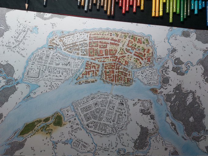20 202 Port Nyanzaru is ready. Now it's time to color the whole thing. #dndart #dungeonsanddragons #chult 22/01/13 19:04