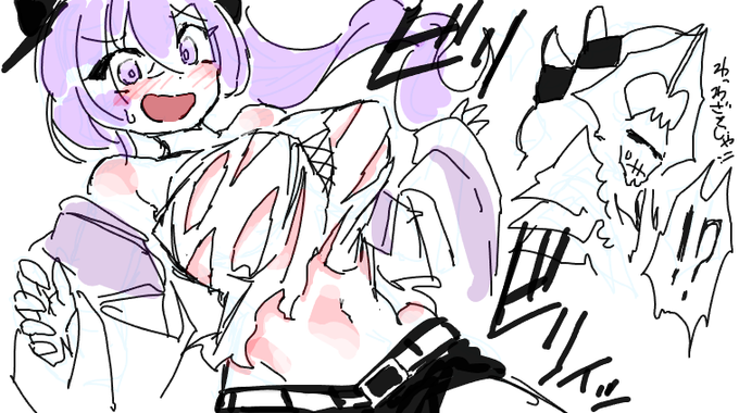 スケルトンレイダーの角に引っかかって服がビリビリになってもうたエイミー。 #シャドバ