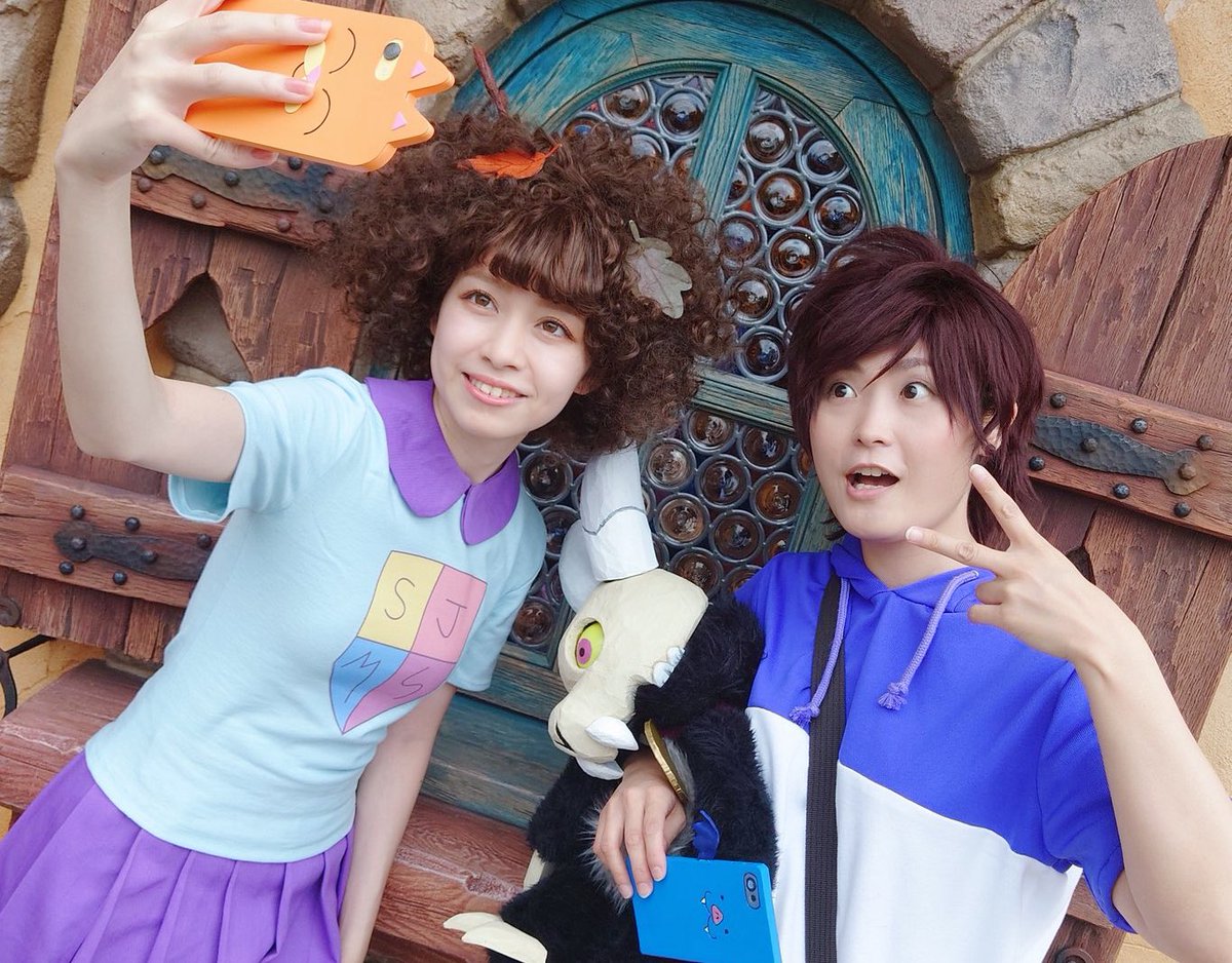 異世界でがんばるDchガールズ🦉🐸 アンフィビア×アウルハウスが実現して超幸せ!!! ルースの盛り沢山な小道具が本当にすごくてワクワクしっぱなしでした、フワフワキングも超カワイイ! お互いのスマホで自撮りしてる写真ほんっっっとうにお気に入り🤦♂️❤️🔥 🦉@nekoricely #Dハロ仮装2022 #Dハロ仮装