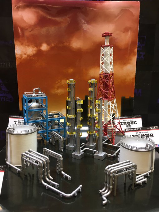 12 18 【PLUM ワンフェス情報】 工業地帯 今回は夕陽を背景にして初展示です! 是非ご覧下さい! #wf2020w #plum #ワンフェス #工業地帯 #工場萌え 20/02/09 09:30