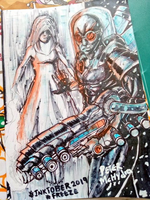 Inktober day 4 : Freeze Mr Freeze and his favorite wife Nora #inktober2019 #freeze #mrfreeze #dccomics #petermchydra #art