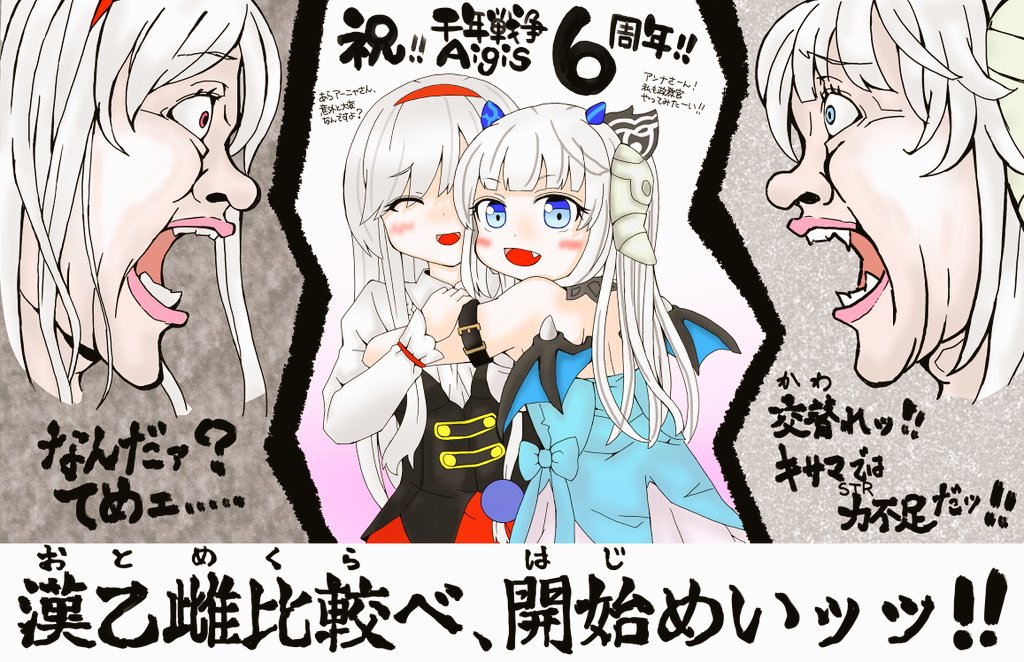 #アイギス6周年アートコン 祝!!もうすぐ6周年おめでとうございます!!\\٩( ‘ω’ )و /// 表面では平静を保ちつつ、しかしオトメたちの水面下の闘いはさらに激化していくこと間違いなし!!
