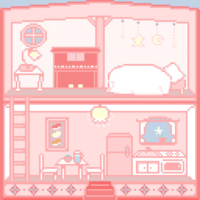 2 24 ドールハウスを描いたよ🏠👗 想い出のおいえ。 #pixelart #ドット絵 20/05/18 23:49