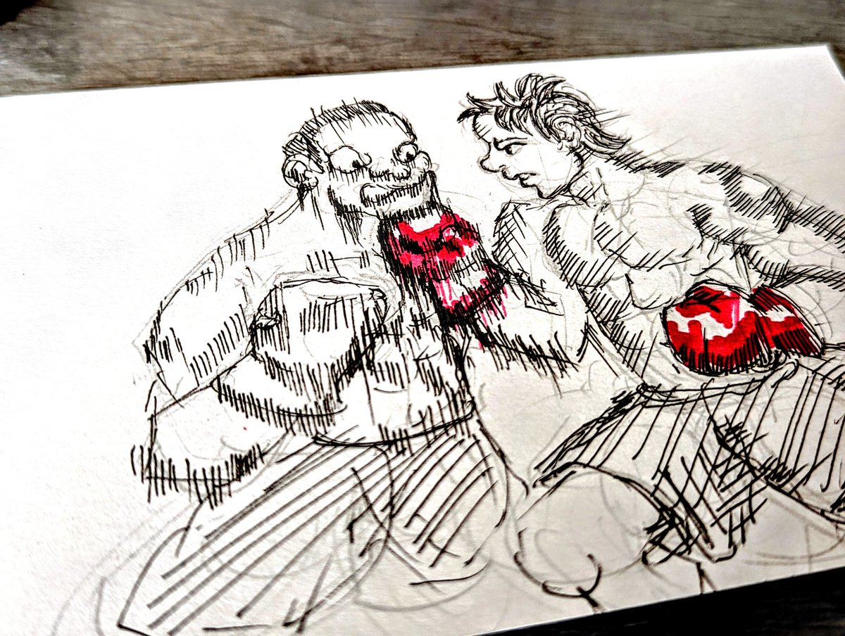 殴るシーン描くの楽しい #一日一絵 #ボクシング #絵師さんと繋がりたい #アナログイラスト #ペン画