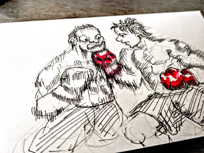 0 1 殴るシーン描くの楽しい #一日一絵 #ボクシング #絵師さんと繋がりたい #アナログイラスト #ペン画 23/04/07 23:02