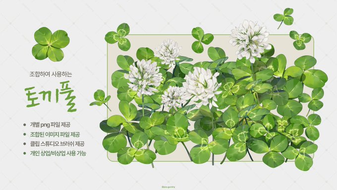 🦊조합형 토끼풀 소재 브러시 pougummy.postype.com/post/13666728 기간 한정 할인된 금액으로 유료 배포합니다! 자세한 내용은 본문을 참고해 주세요. 1월 3일에 원가로 전환됩니다! ☘