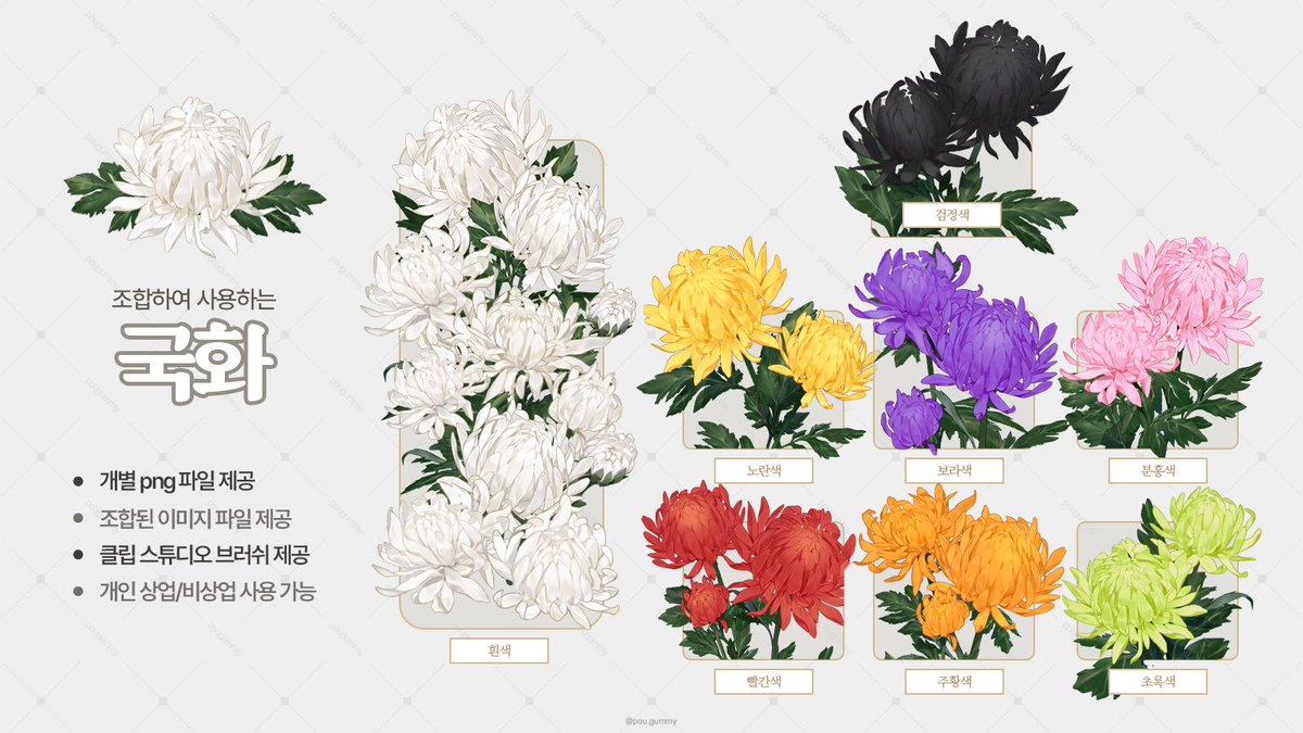 🦊조합형 국화 소재 브러시 posty.pe/omezc0 기간 한정 얼리버드 금액으로 유료 배포합니다! 자세한 내용은 본문을 참고해 주세요. 할인 기간 / 01.20~01.24 💚