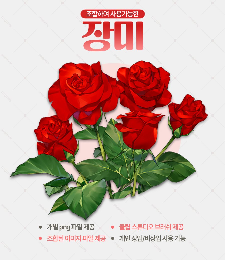 🦊 조합형 장미 소재 브러쉬 posty.pe/fwwzaw 기간 한정 할인된 금액으로 유료 배포 합니다! 부분 무료 배포되는 내용도 포함되어 있으니 자세한 사항은 본문을 참고해 주세요. 할인 기간 / 06.17~06.20 🌹