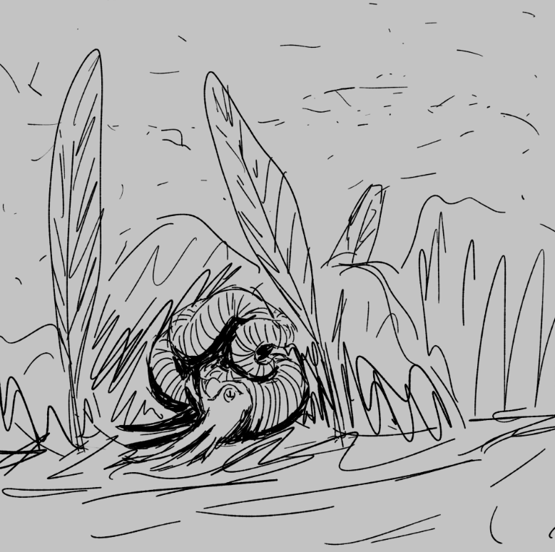 benthic ammonite sketch (cant remember the taxon tho) . #paleoart #sketch #paleontology #ammonite #blackandwhite #SciArt