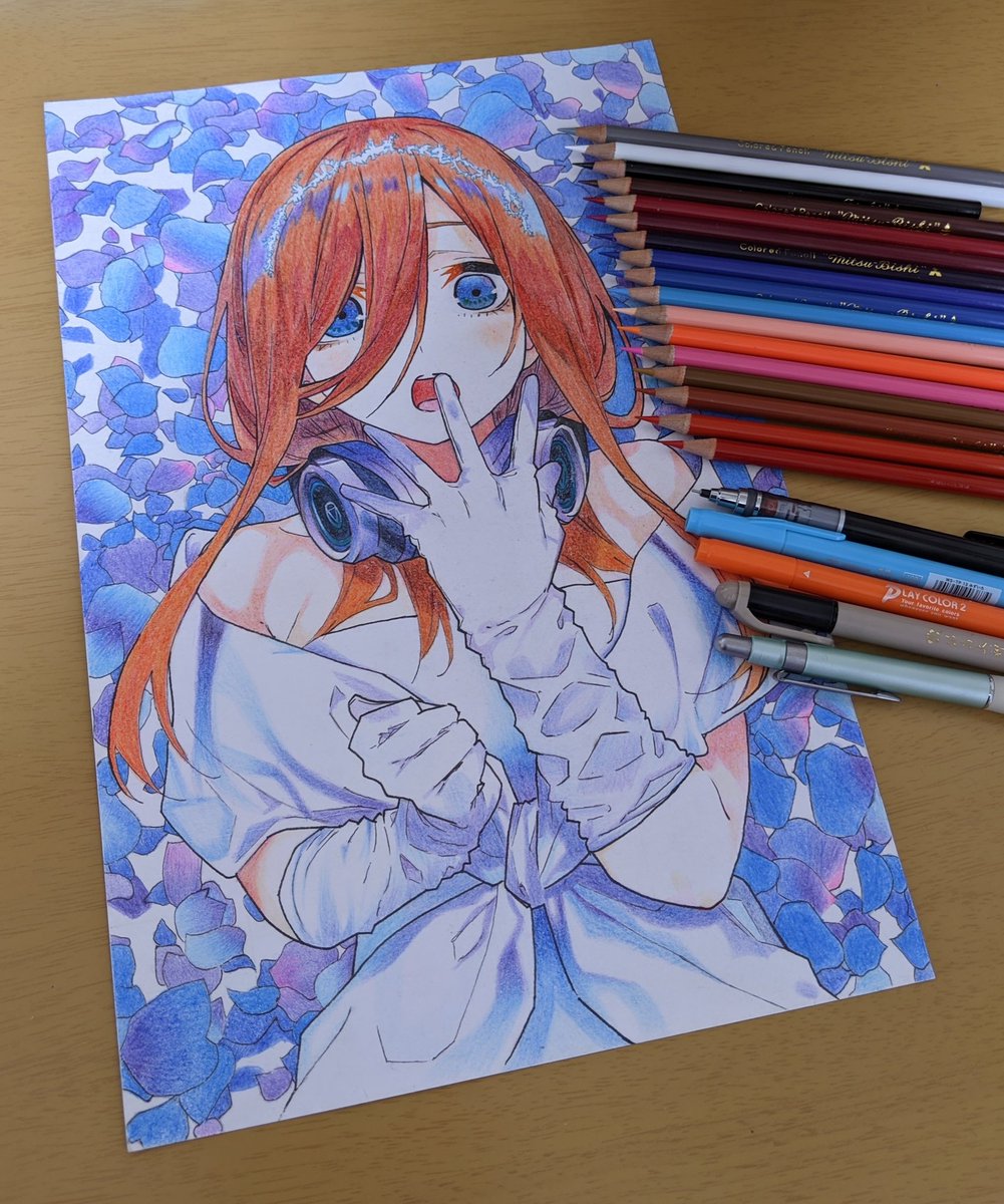 この間描いたやつをデジタル化! 初めてこういう塗り方をしました。 (塗りは大目に見てください) あなたはデジタルとアナログ、どっちが好きですか? #デジタルイラスト #五等分の花嫁 #絵描きさんと繋がりたい