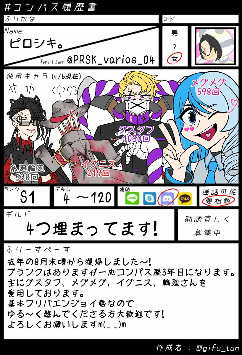 #コンパス履歴書 #コンパスお絵描き勢と繋がりたい 初めての繋がりたいタグ失礼します! 🕸さんや🚭さんばかり描いていますが 最推しは☠️さんです ふぁぼリツで気になった方を 無言でお迎えさせていただきます👀✨ (尚片思いは2日までとします) 雑垢ではありますが 何卒よろしくお願いします🙇♀️
