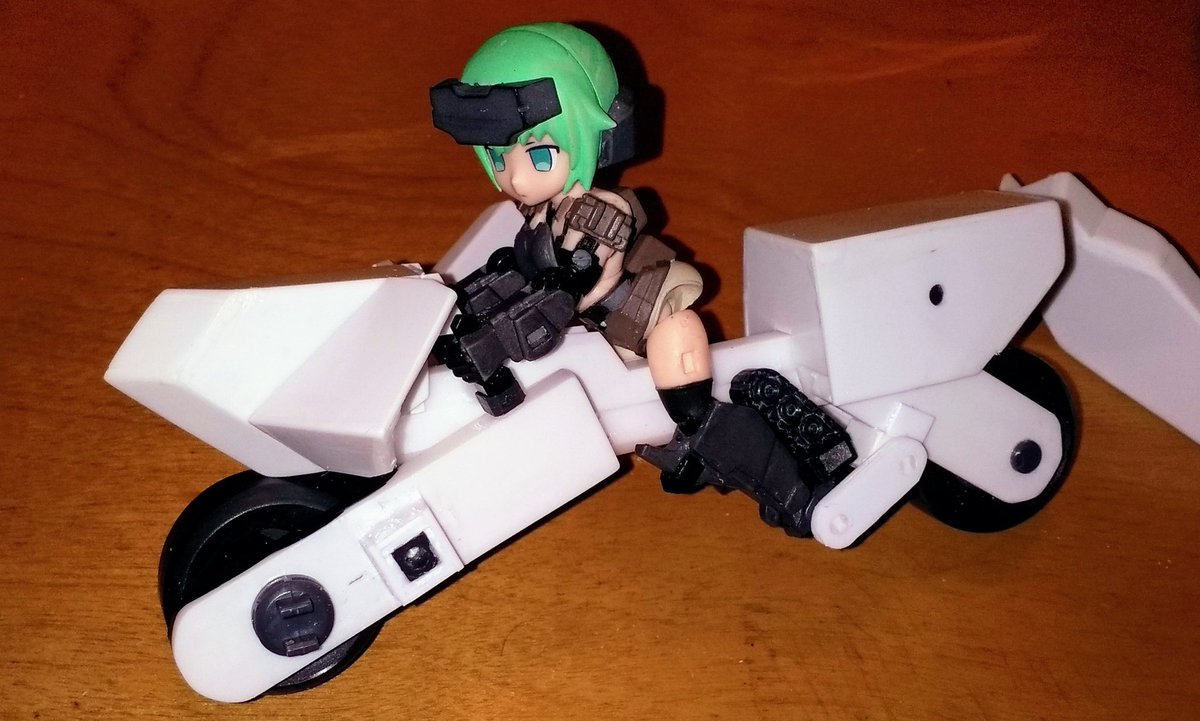 今製作中のデスクトップアーミー用大型バイク 今のところ轟雷しか乗せてませんがおそらくどのデスクトップアーミーでも乗れるはず(装備類があたる可能性があるので素体での搭乗になりますが) #デスクトップアーミー