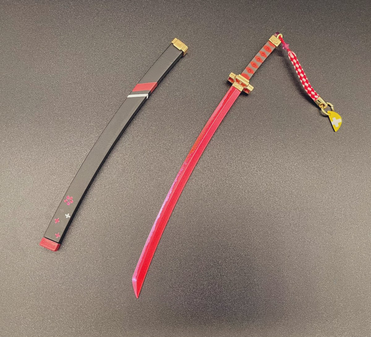 爀刀『大神』 ミオファの森のとある祠に納置されていると云う紅の刀身を持つ太刀 紫に輝くアメジストがあしらわれており、その一振りはあらゆる厄を祓う力が有るとされる 一説では鳩の頭を持つ魔獣が使用し、主に降りかかる災厄を滅して回ったとか… #みおーん絵 #hololiveALT