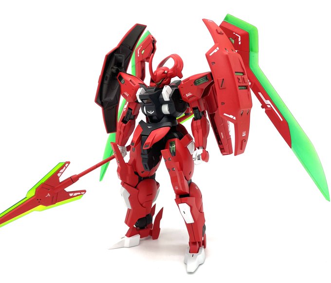 HGトーリスリッター完成 パーツ無くしながらも何とか自作して完成… プレバンで見て初めて知った機体なので詳細は解りませんがとにかくイケメン EXAM発動状態も蛍光塗料で再現、カラーリングはバトオペの色味を参考にしています(4枚目の) #ガンプラ #ガンプラの画像貼るとRTされると聞いて