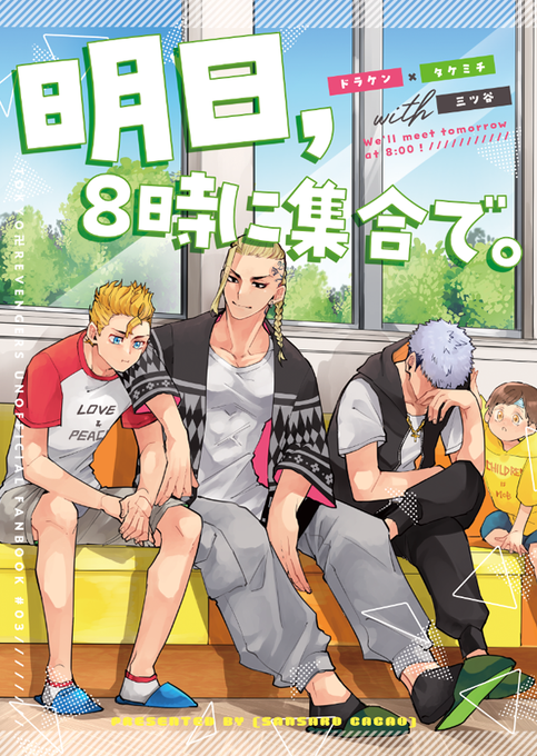 スパコミで出る予定のドラ武+巻き込まれ🍯くんの表紙です~! デザインは倉田翠さん( @midorikurata )にお願いしました~!可愛い最高✌ありがとうございます!