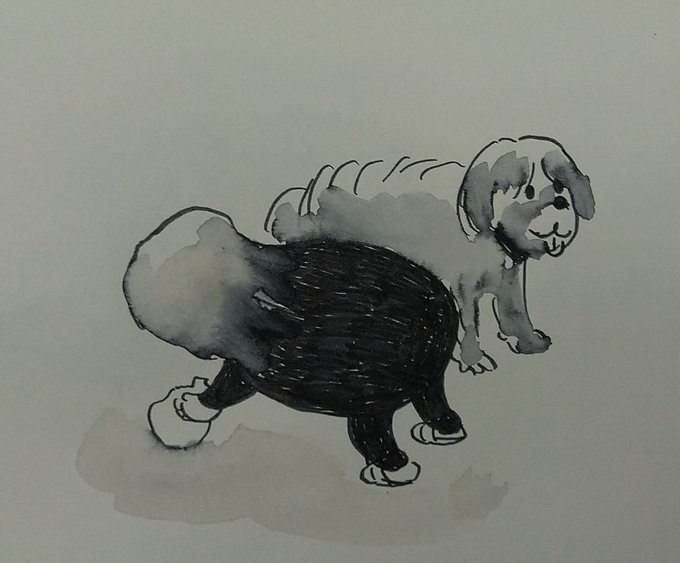 犬が2匹と思ったら、1匹はゴミを捨ててるおばさんだった! #イラスト好きな人と繋がりたい #絵描きさんと繋がたい #イラスト #みんなで楽しむTwitter展覧会 #analogart #artwork #art