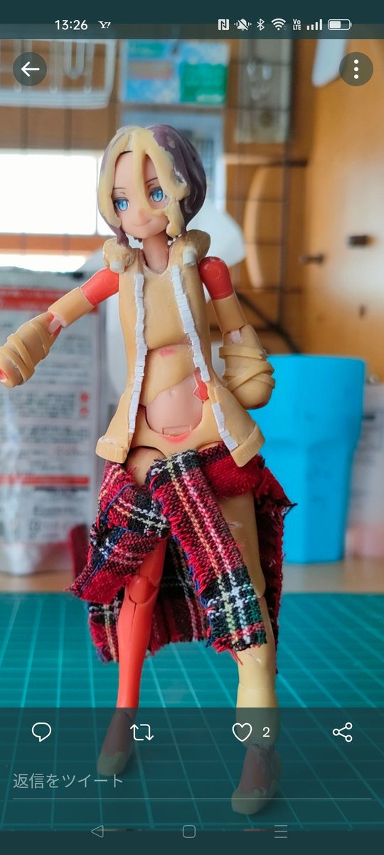 メガミデバイス改造ナリタタイシン進捗。 ぶっ壊した腕の変わり届いたので、取り替えた。 腰に巻いてるシャツも何となく造形できた気がする。 まだまだかかりそう。 #ウマ娘造形部 #ウマ娘プリティーダービー