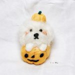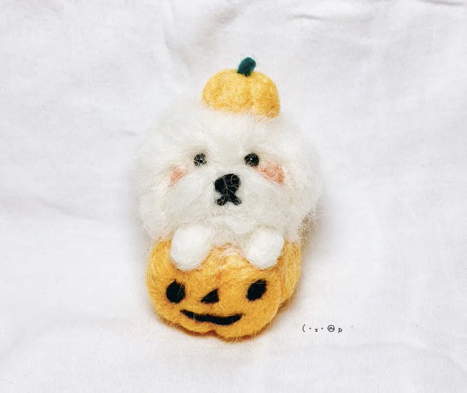 ぐっともーもー☁️ 8月最終日👀一年はやい! ハロウィングッズも続々出てきましたね👻 カボチャにすっぽりビションフリーゼちゃん #minne minne.com/items/29977963 #羊毛フェルト