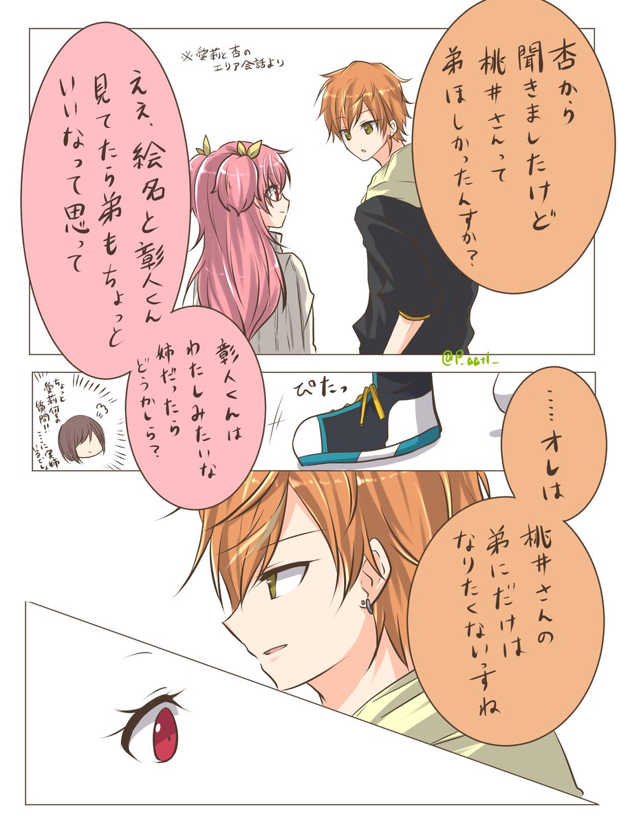 #prsk_NL 🥞とお付き合いしてる🍑が🍀(というか🐧相手)に墓穴掘る漫画。(彰愛)(だけど🥞は出てきません)🥞🍑。