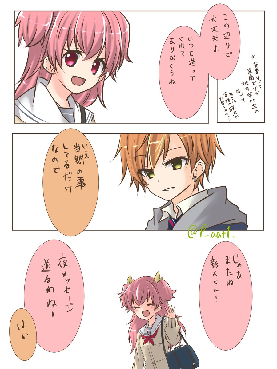 21 51 #prsk_NL 🥞とお付き合いしてる🍑が🍀(というか🐧相手)に墓穴掘る漫画。(彰愛)(だけど🥞は出てきません)🥞🍑。 23/03/29 20:22