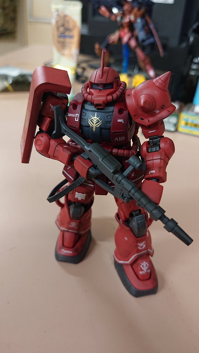 オリジンのシャア専用ザク完成✨ ほぼ素組みでこれはやべぇ……( ゚д゚) 一家に一体レベル……(๑╹ω╹๑ ) #ガンプラ #ザク