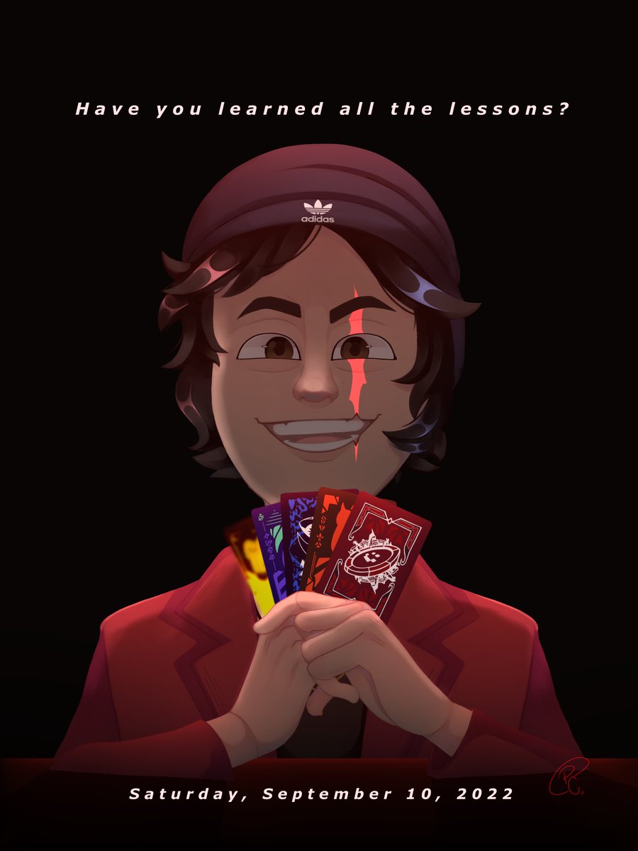 ♦️Have you learned all the lessons?♦️ ♦️ Saturday, September 10, 2022 ♦️ Lo más complicado de este dibujo fue recrear las cartas de póker ya que saque los diseños de las imágenes pero quedaron bien a mi parecer ♥️ @LasNevadasReal @QuackityMerchh #quackity #quackityfanart