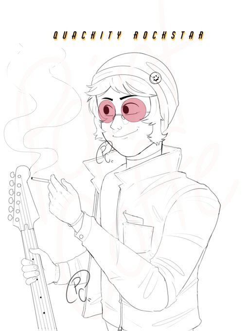 Día 10 - Quackity Rockstar Algún día terminaré el dibujo, me gusto mucho, por el momento se los dejo así 💛 #Patitober #quackityfanart @PatitoTown