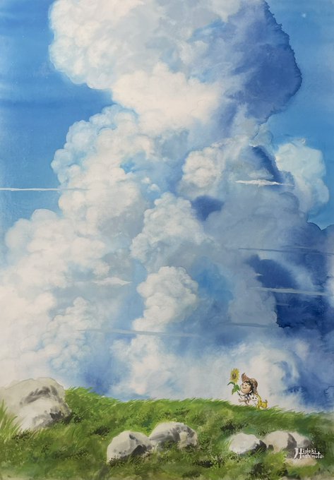 お絵描き動画YouTubeに載せました😊✨ 黙々ともくも雲を描いています✍🏻💦 もくも雲を描きたい人の参考になればと思います👍🏻 リンクはリプ欄の方が良いみたいなのでそちらに載せときます🙇🏻♂️ ではまた(╹◡╹) #Watercolor #水彩画 #手描き
