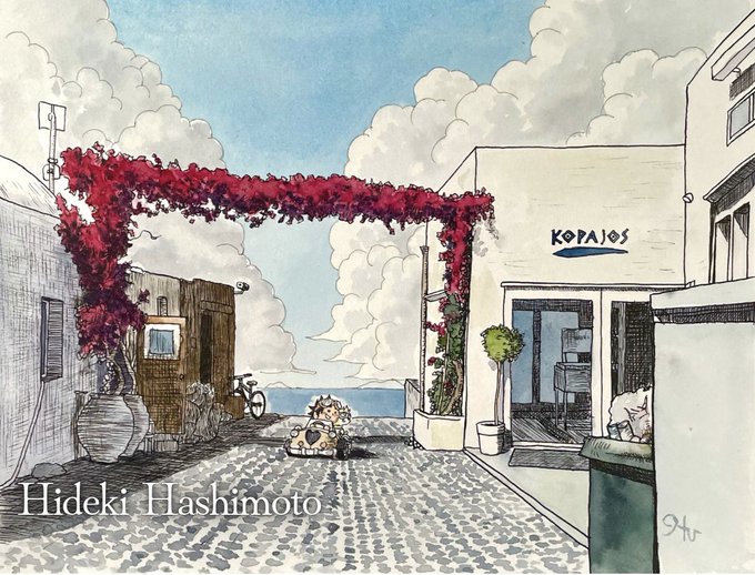YouTubeにお絵描き動画を投稿しましたー✨ ギリシャシリーズは全部この描き方にしようかな👨🏻🎨 良かったら観てください😊✨ リンクはリプ欄にございます👍🏻 #水彩画 #watercolor #ギリシャの赤い花のアーチ
