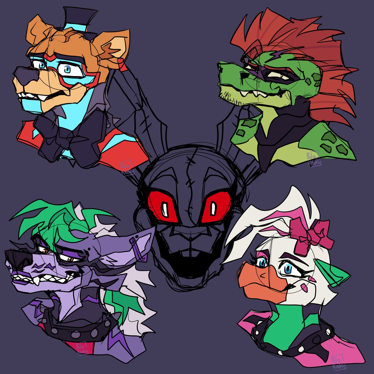 We have lesbians, a grumpy Monty, the sun, bear father, my wife, and a crispy old man #FNAF #fnafsb #fanart #digitalart