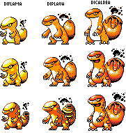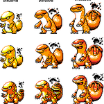 Ya me siento Disney haciendo remakes de cosas viejas, decidí editar esta línea evolutiva (de abajo hacia arriba las versiones de los ultimos 3 años) además hice un pequeño Gecko de Cola Gorda distinto para probar un posible cambio de diseño. #fakemon#pixelart