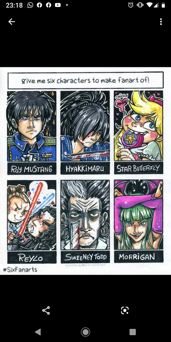 Segunda tanda por orden de lista, poco a poco, esta vez mi compi de piso, yo maja ella me lo ha escaneado para que no quede tan cutrin. Intentaremos seguir con ello.. =D #SixFanartsChallenge #SixFanarts #roymustang #hyakkimaru #StarButterfly #reylo #sweeneytodd #morrigan
