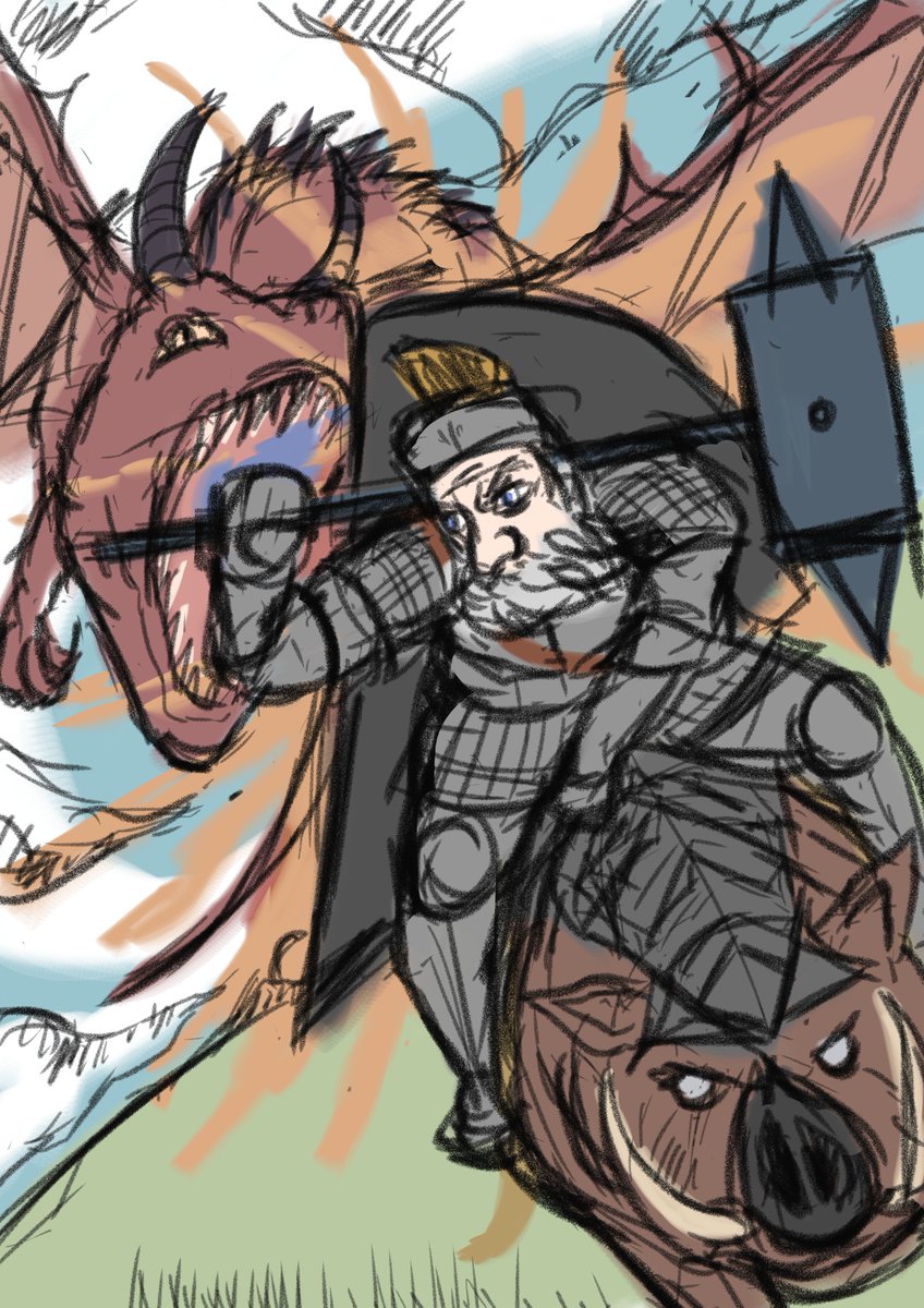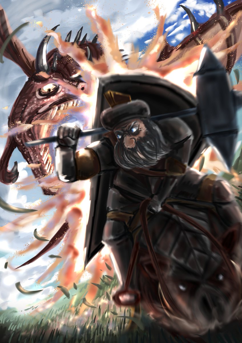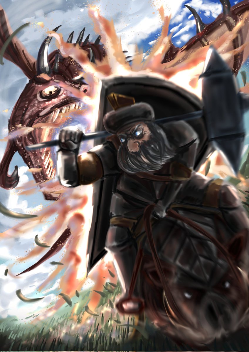 イラスト完成! ドラゴンから逃げるドワーフをイメージして描きました。 #イラスト #イラスト好きな人とつながりたい #モンスター #クリーチャー