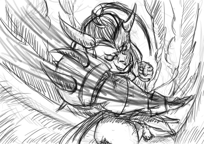5 37 ラフ中・・・ オルトロス戦で窮地に陥っている状況をイメージしてお絵描き中・・・ #イラスト #イラスト好きな人と繋がりたい #モンスター 23/03/05 16:38
