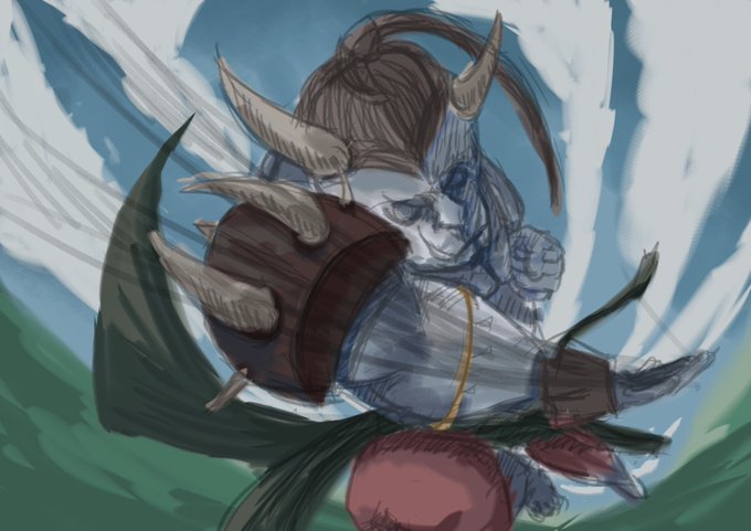 思い付きで落書きしてたら思いのほか スピード感?的な感じが出たので イラスト描いてきますm(__)m 足の速さが爆速のオーガの設定で。 #イラスト #イラスト好きな人と繋がりたい #モンスター