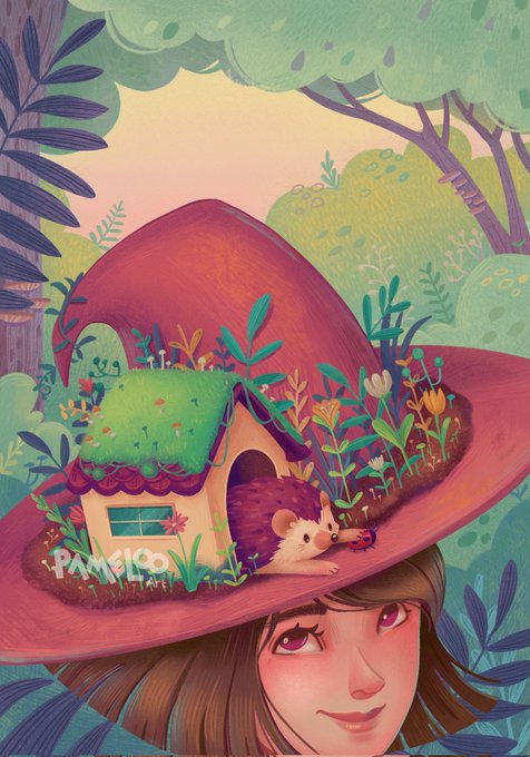 I'm working on my middle grade/ young adult portfolio. Kicked it off with my hedgehog witch persona! 🥰 I'm available for new projects ❤️ pamelooart.com #kidlitart #ArtistOnTwitter #hedgehog #procreateart #procreate #illustration