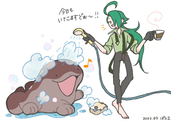 66 268 チリちゃんのドオーは特性ちょすいなので水も平気♪ morning routine的な。 23/03/09 07:00