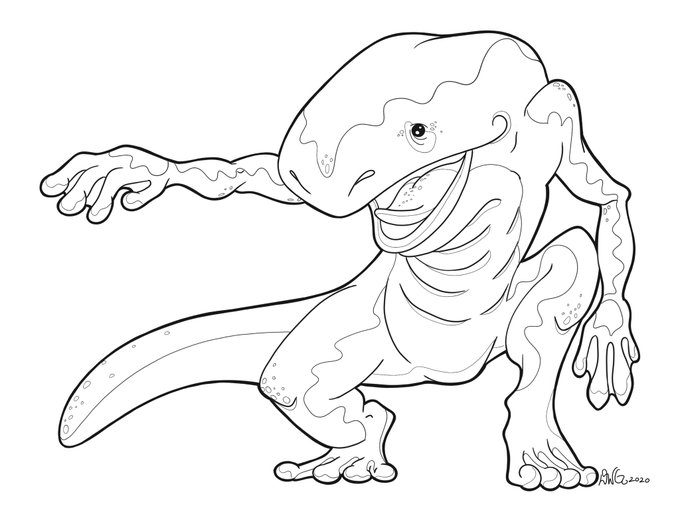 An early take on update 28. #wastelandcolouringbook needs more stinky slimy nasty monsters! Thanks @ZeroFoxFK for the source photo What scent do you think a small breath is? I imagine something akin to dirty socks... #fallout76 #inktober