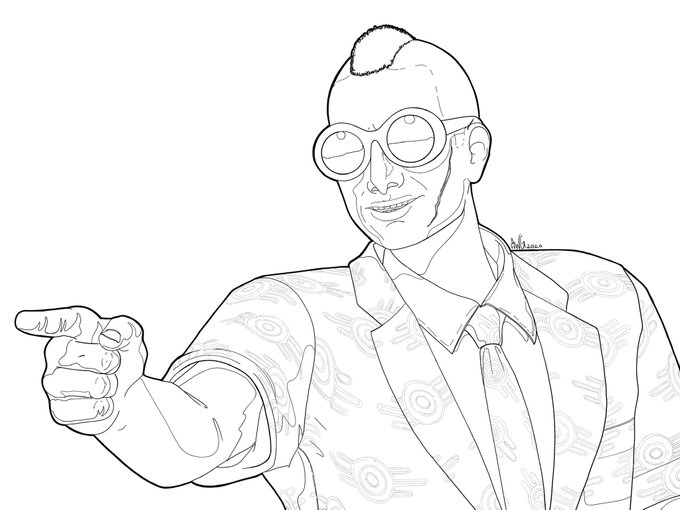 Oct 27 #inktober update for the #fallout #wastelandcolouringbook I feel like he is trying to sell me something... Special thanks to Vault-Tec and @FreddyLosSantos ... I got my self a space in a vault!