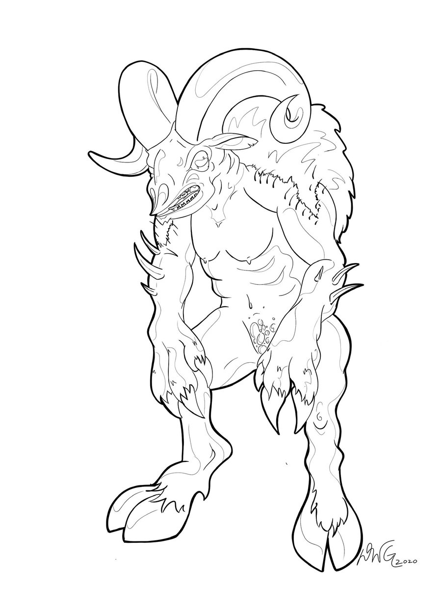 Slightly stylized with reduced details... the Sheepsquatch are totally cranky, but I love them! I want some more?new big bass pls #fallout76 #wastelandcolouringbook #inktober