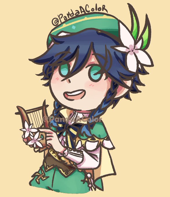 Feliz cumpleaños, Venti!! Aunque sea solo un chibi que hice para sticker, aún así un fanart de Venti es un fanart de Venti #GenshinImpact #genshinimpactfanart #ventifanart