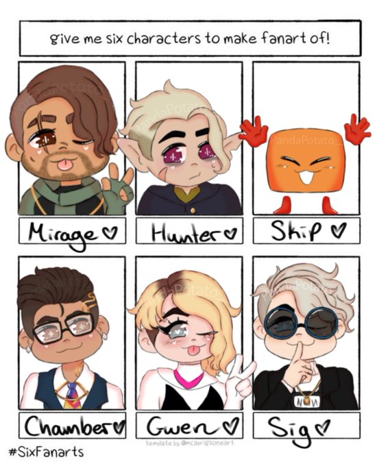 Here's the #SixFanarts I posted about some days ago! It was a lot of fun drawing all these characters 🫂💖💖 Will post their individual artworks in the thread 💖 #ApexLegends #TheOwlHouse #ValorantArt #spidergwen #Fortnite #FortniteParadise #tohHunter #ArtistOnTwitter #artmoots