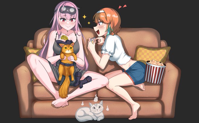 Takamori Movie Night 💀🍿🐔 Commissioned by @LC_Lapen . Thank you! #callillust #artsofashes #HololiveEN