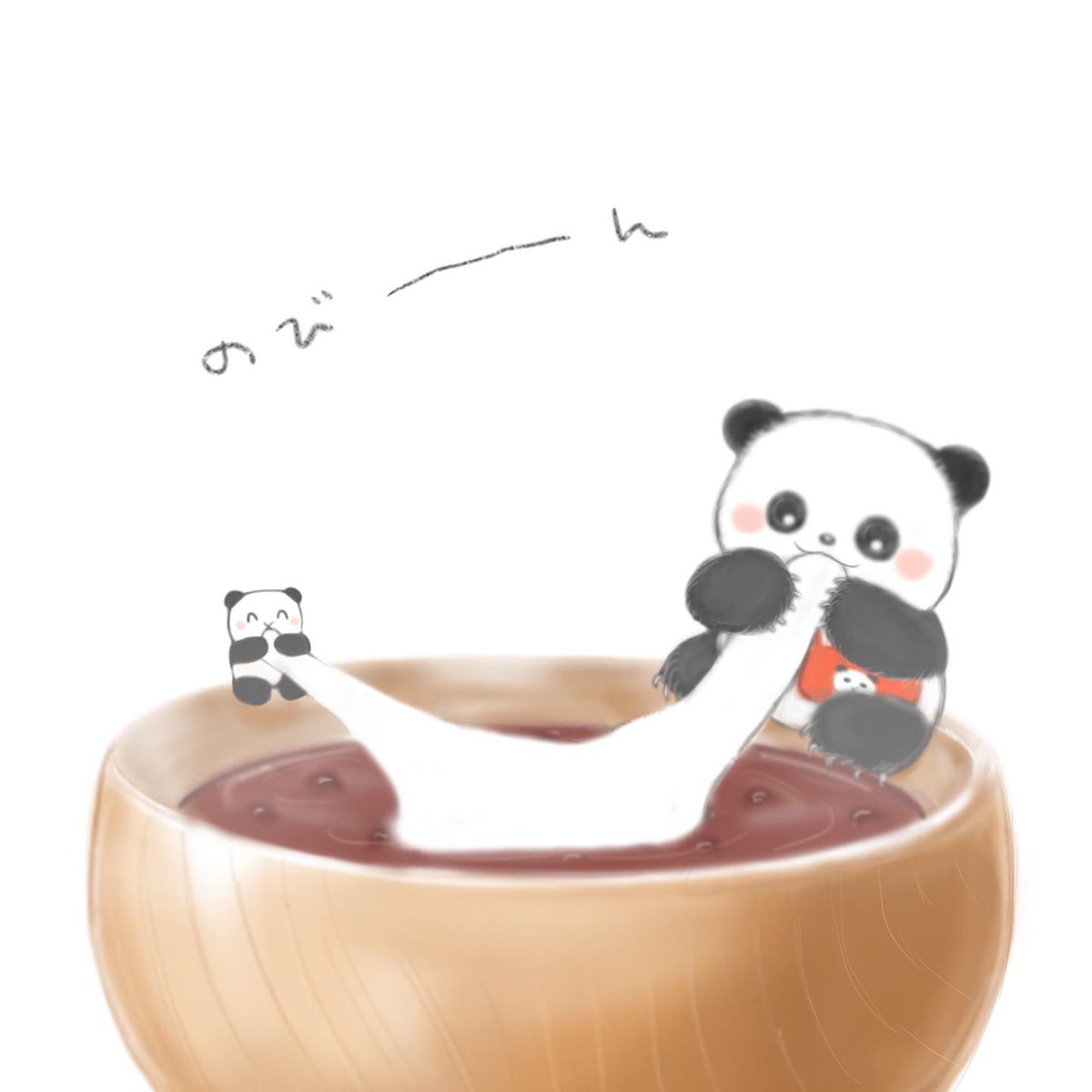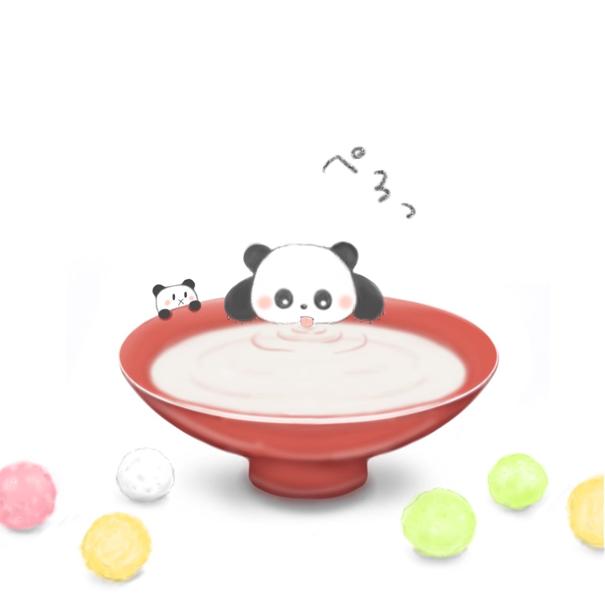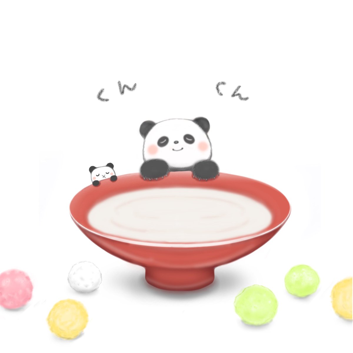 鏡開きぜんざいをたべるちびパンダ🐼 #イラスト #イラスト好きな人と繋がりたい #絵柄好みって人にフォローされたい #絵描きさんと繋がりたい #漫画が読めるハッシュタグ #illustration