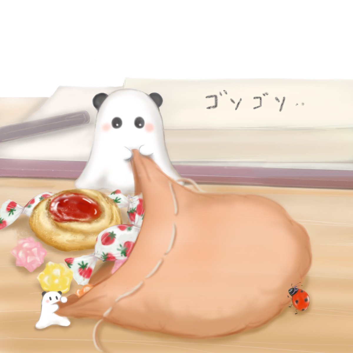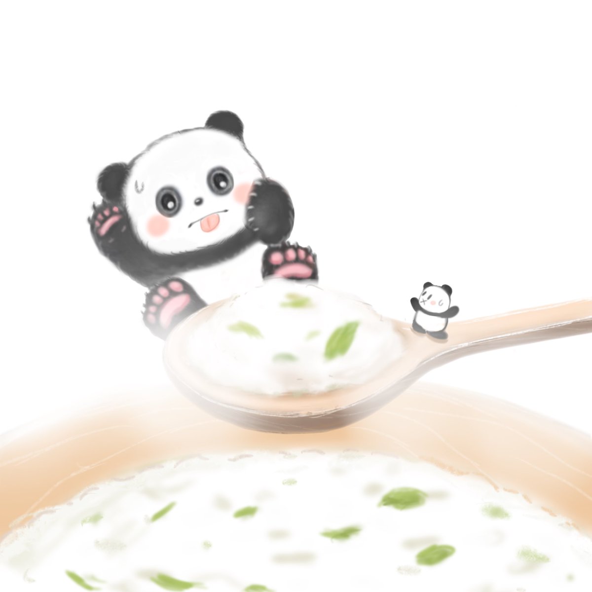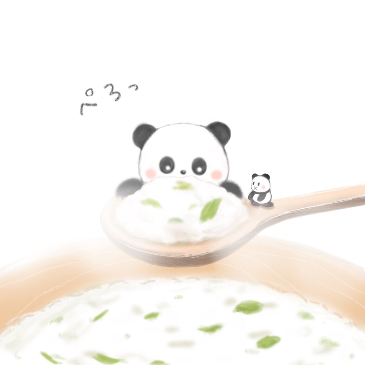鏡開きぜんざいをたべるちびパンダ🐼 #イラスト #イラスト好きな人と繋がりたい #絵柄好みって人にフォローされたい #絵描きさんと繋がりたい #漫画が読めるハッシュタグ #illustration