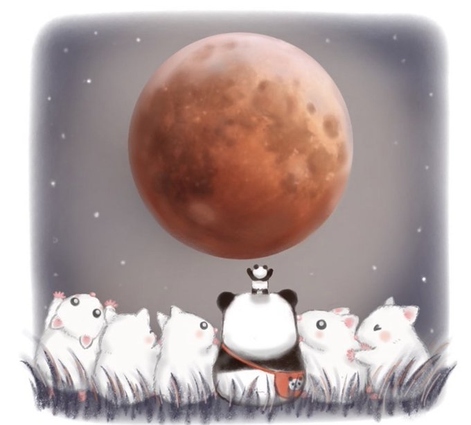 今夜は皆既月食🌕🌑 見られるといいな🐼💕 #イラスト #illustration #ゆるいイラスト #絵描きさんと繋がりたい #イラスト好きさんと繋がりたい #ツイッターTL復活祭 #漫画が読めるハッシュタグ