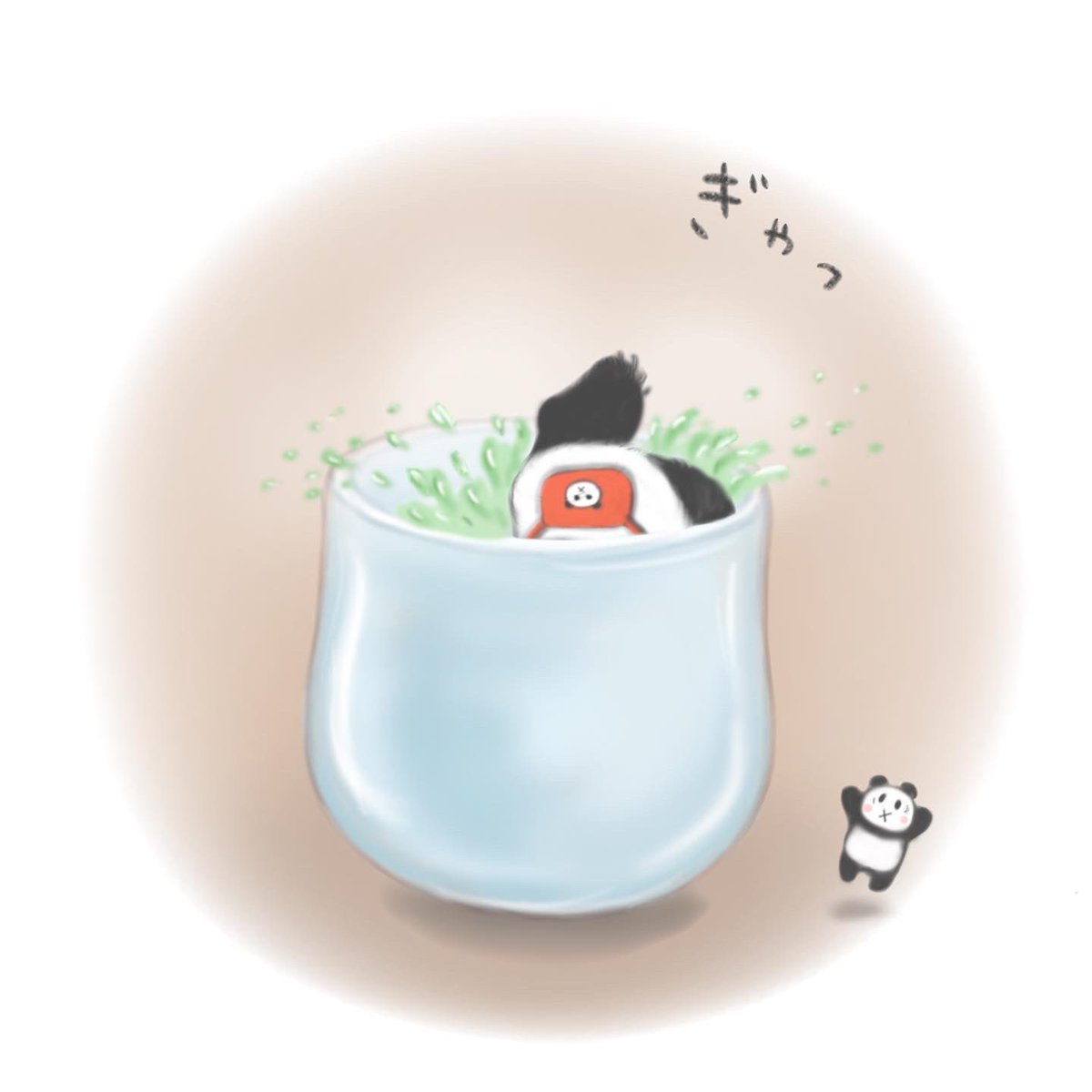 温かいお茶が飲みたいちびパンダ🐼 #イラスト #illustration #オリジナルキャラクター #絵描きさんと繋がりたい #イラスト好きな人とつながりたい #絵柄が好みって人にフォローされたい