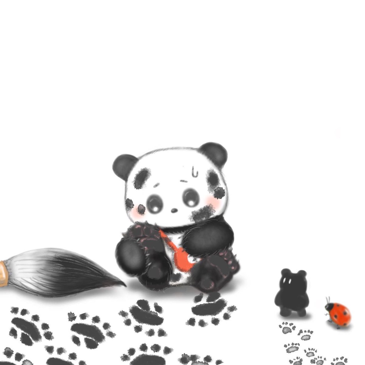 今日はお休み?あそぼあそぼ〜‼︎ #ちびパンダ #イラスト #illustration #オリジナルキャラクター #絵描きさんと繋がりたい #絵柄が好みっていう人にフォローされたい #イラスト好きさんと繋がりたい